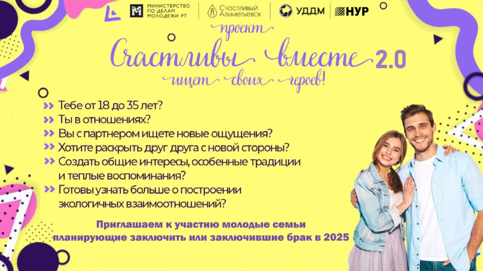 Молодые семьи, которые планируют или уже заключили брак в 2025 году, приглашают принять участие в проекте «Счастливы вместе 2.0»!