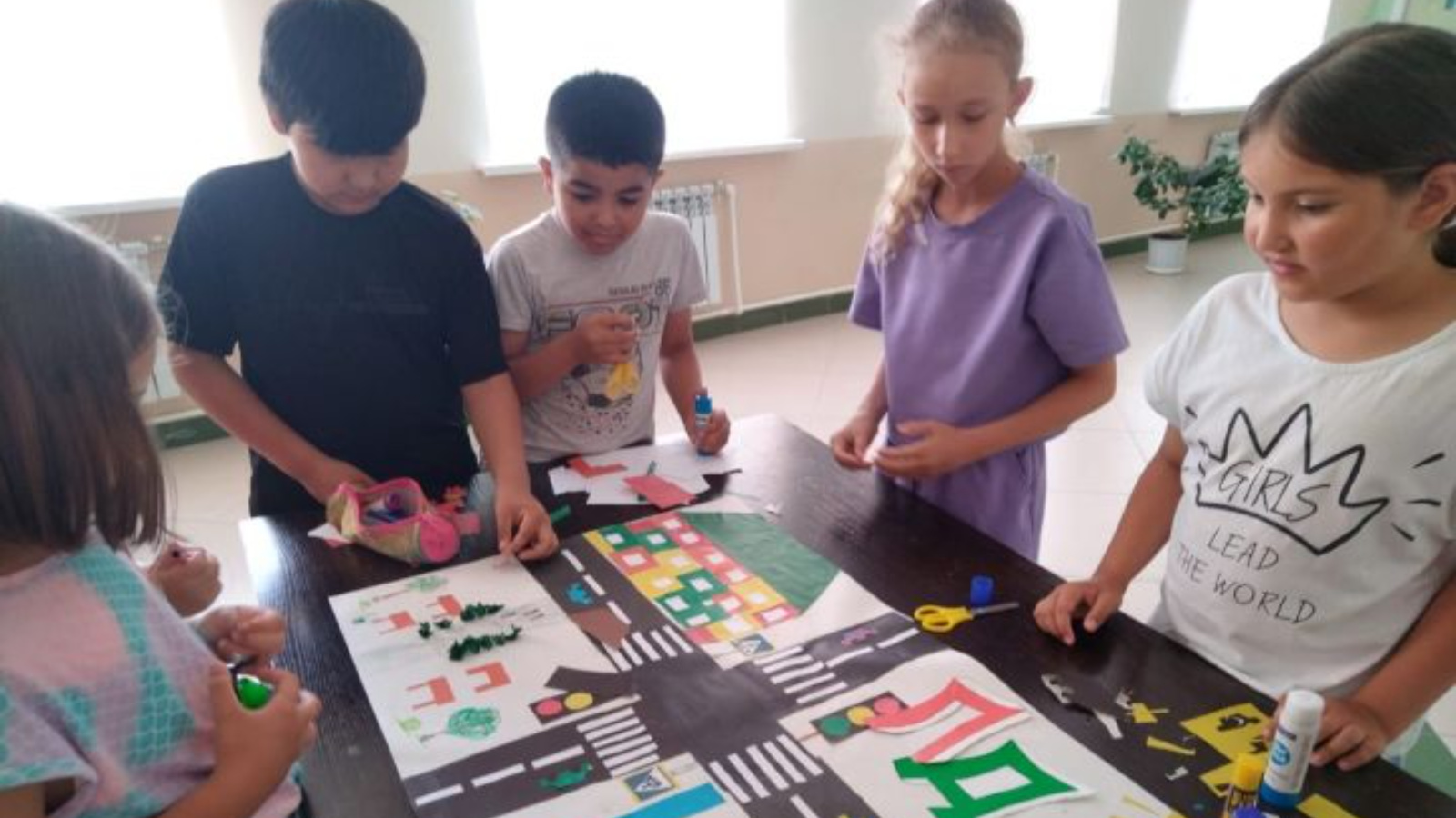Аппликацию по ПДД «Дорога в школу» сделали уруссинские ребята пришкольного лагеря