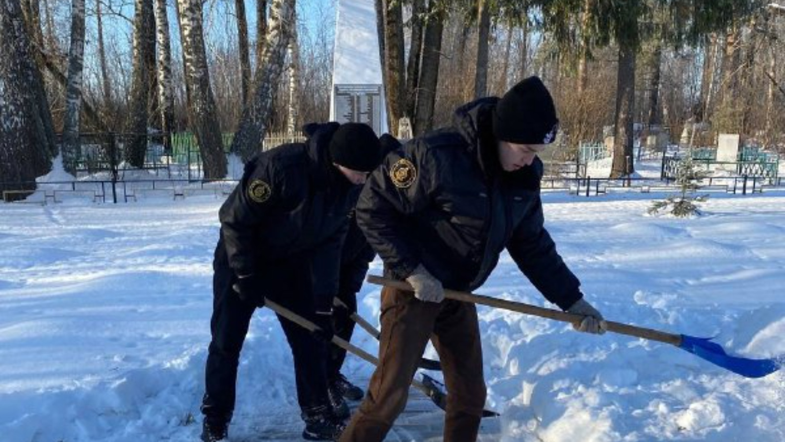 активистами провел субботник на Братской могиле, очищая территорию от снега.