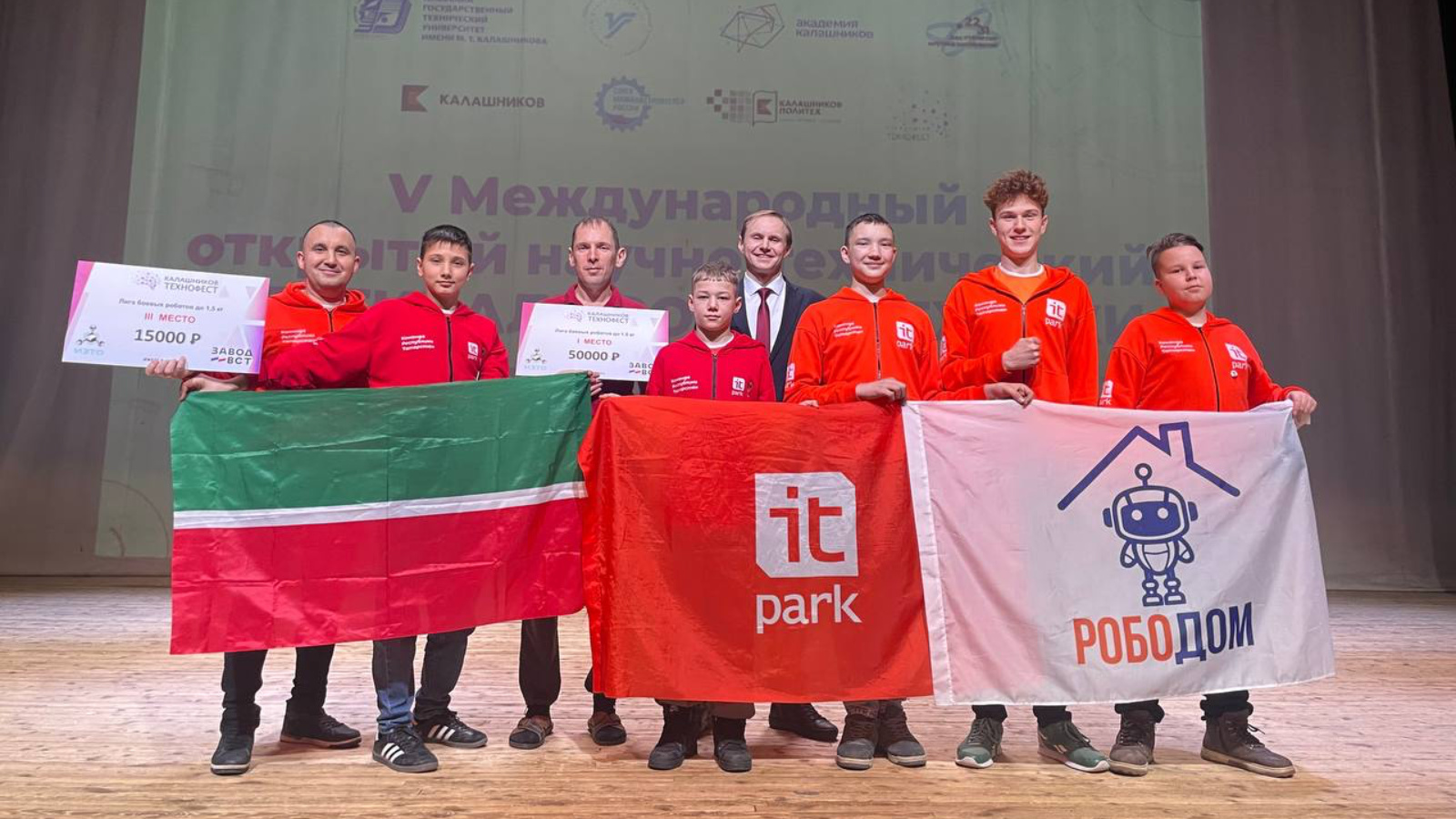 Команды от ИТ-парка, которые представляли Татарстан в составе сборной боевой робототехники, заняли первые места в соревнованиях по битве роботов в категории до 1,5 кг: