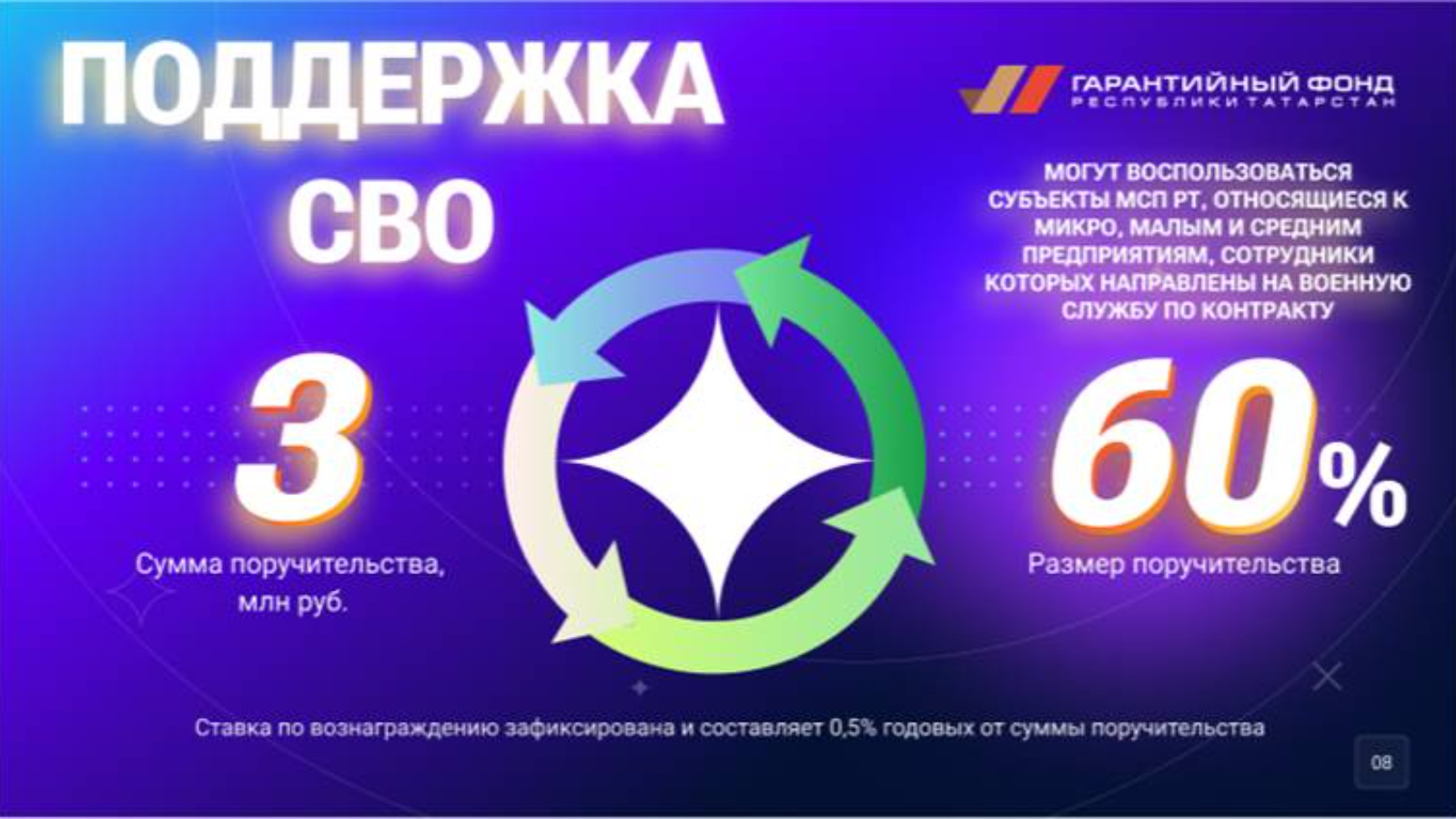 Предприятия Татарстана по нацпроекту могут воспользоваться поддержкой Гарантийного фонда РТ в рамках льготного гарантийного продукта «Поддержка СВО» Государственной поддержкой могут воспользоваться субъекты МСП Татарстана,