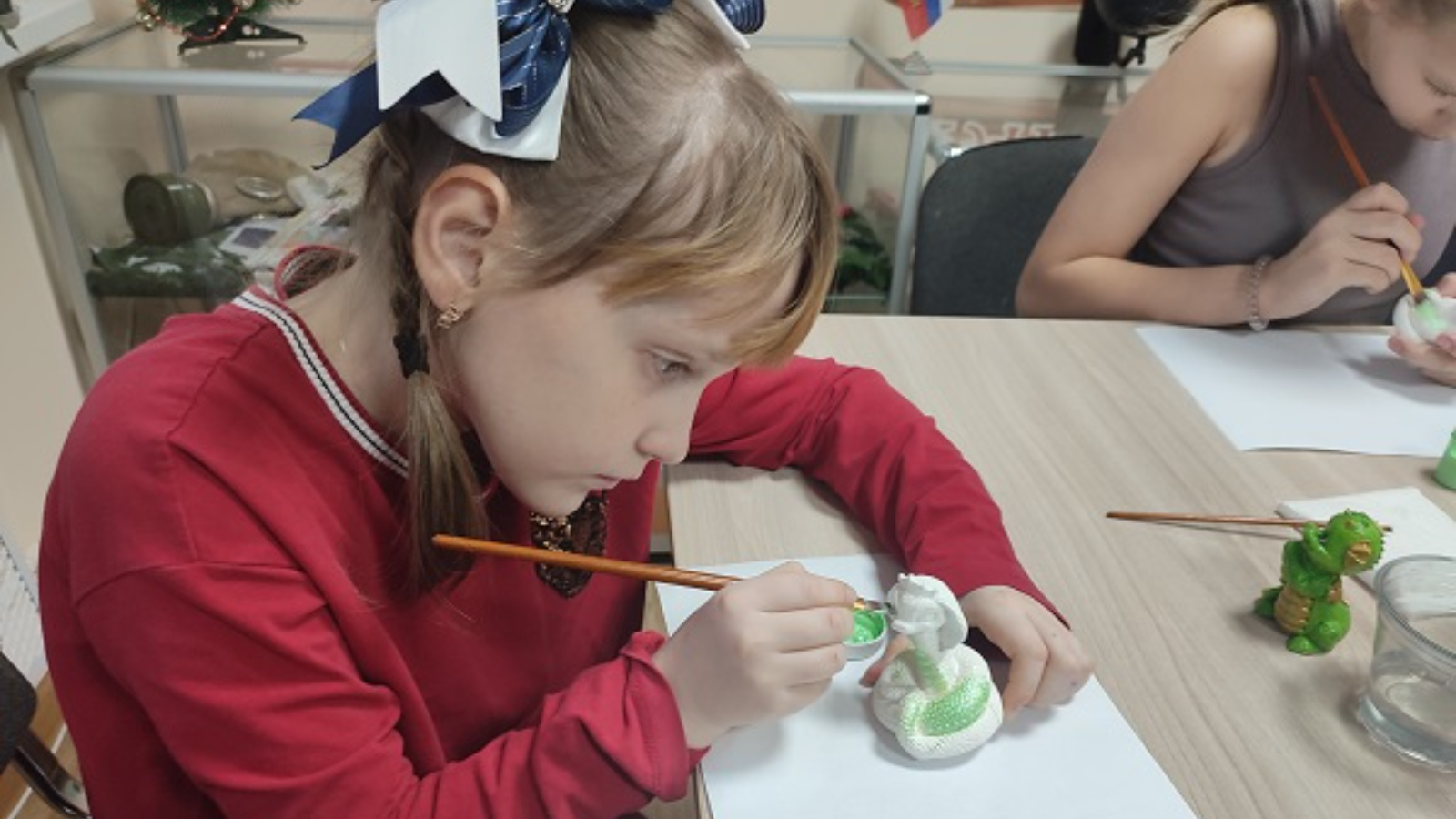 Детям предложили раскрасить фигурки змей. Каждый фантазировал и придумывал, каким будет его работа. Все участники мастер-класса остались довольны, получили новые знания и навыки работы с гипсом.
