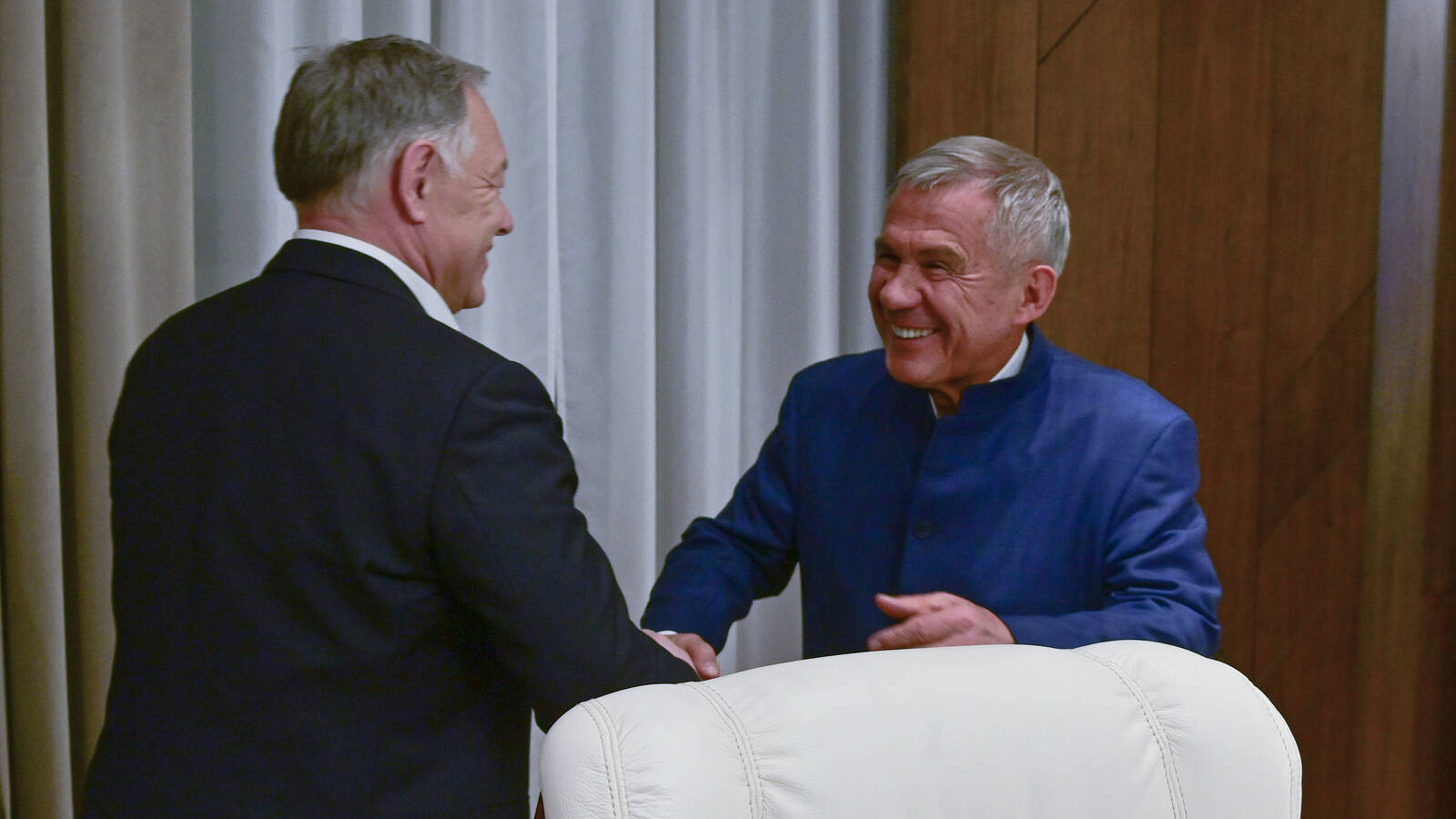 С председателем правления Государственной компании «Российские автомобильные дороги» Вячеславом Петушенко встретился сегодня вечером Раис Татарстана Рустам Минниханов.
