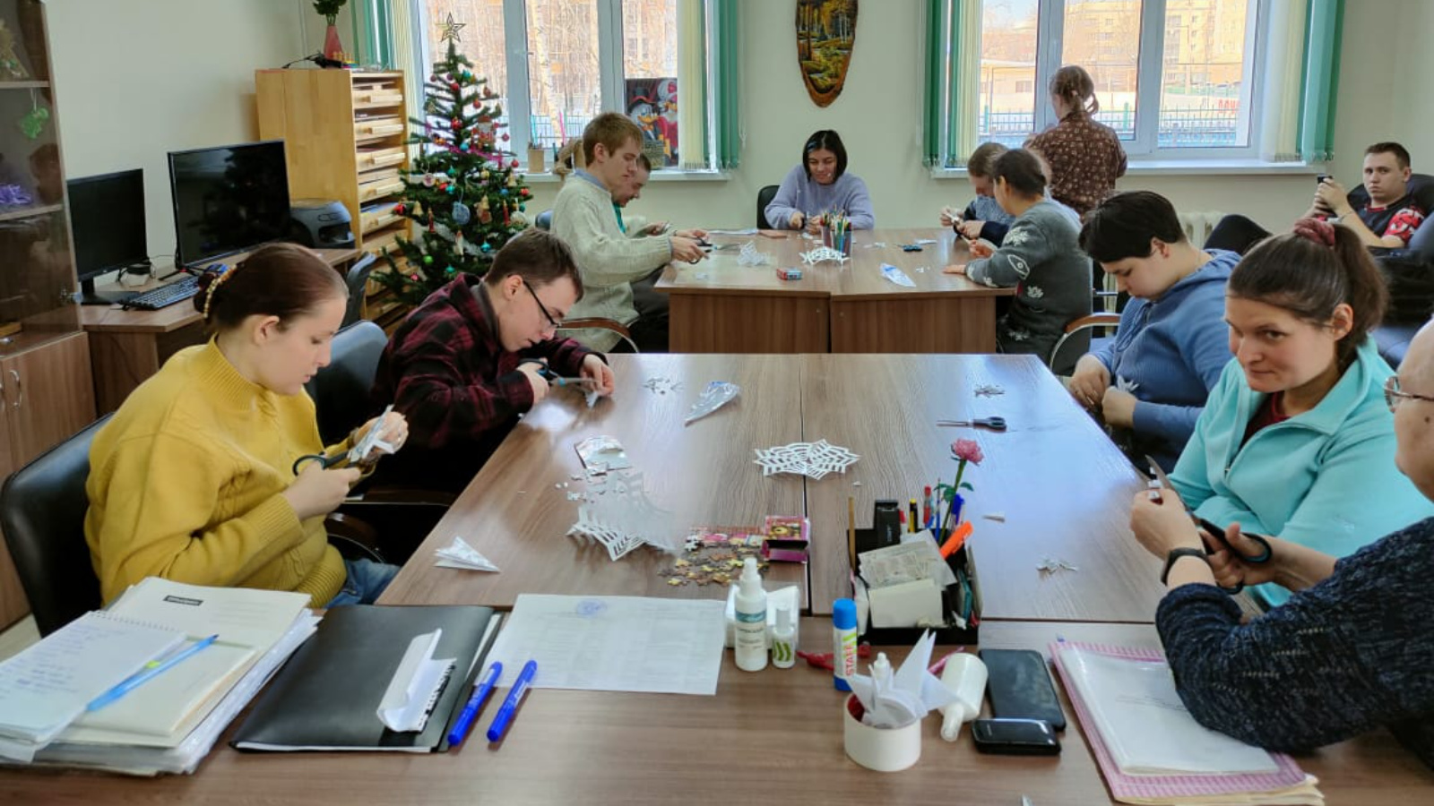 Сегодня в Центре реабилитации инвалидов «Изгелек» в г. Набережные Челны для получателей социальных услуг провели мастер-класс по вырезанию снежинок из бумаги.
