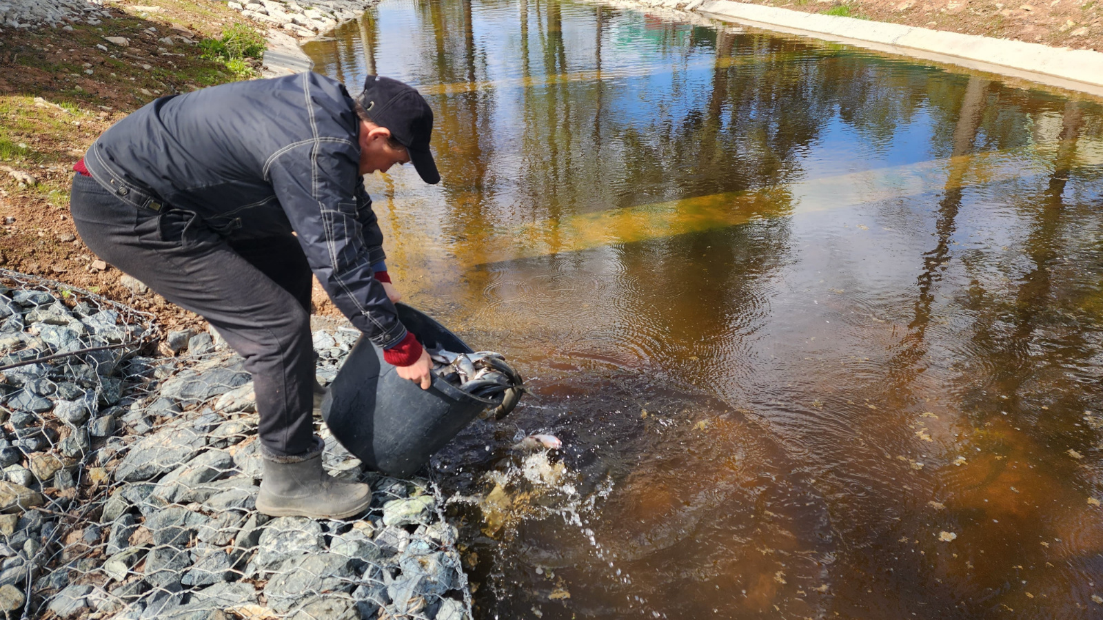 В Мёшинском СП после ремонта пруда были выпущены рыбы.