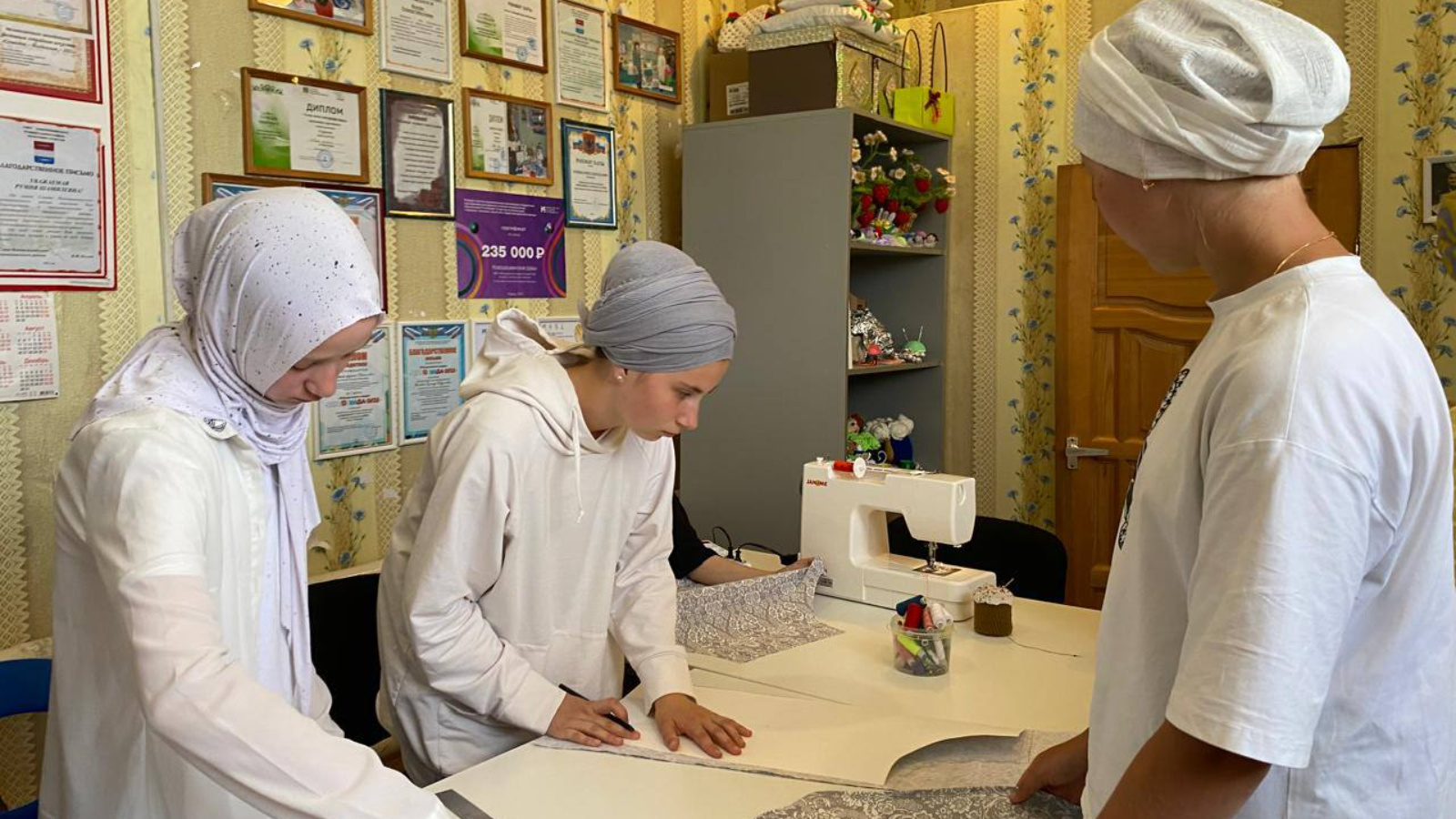 Мастерская оснащена швейными машинками, измерительными инструментами и всеми необходимыми принадлежностями для шитья. Помимо этого, подростковый клуб также приобрел проектор и навесной экран для обучения.