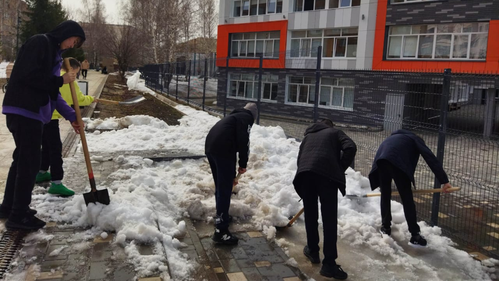 Педагоги и ученики школ города присоединились к экологическому двухмесячнику. Все дружно вышли раскидывать снег на своих территориях. Так, снегт расстает быстрее и можно будет дальше продолжить уборку территории.