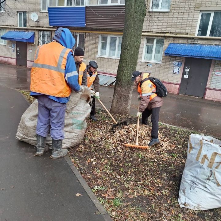 Несмотря на холодную середину осени, в городе идет активная уборка территории от опавшей листвы. Коммунальные службы работают во дворах, на городских улицах, вдоль дорог и на газонах.
