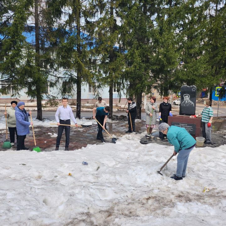 Юнармейцы, волонтеры и участники «Движения первых» школы № 4» вместе с активистами-ветеранами одними из первых вышли на субботние в Лениногорске и очистили от зимнего мусора площадку у памятника комиссара, героя гражданской войны Александра Кондратьева.