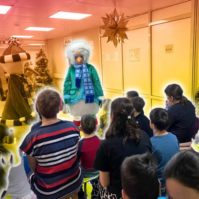 Маленьких пациентов неврологического отделения ДРКБ посетили Снеговик и сказочные персонажи