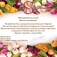 Дорогие женщины! Главный врач ГАУЗ "РЦПБ СПИД и ИЗ МЗ РТ" Галиуллин Нияз Ильясович сердечно поздравляет вас с наступающим Международным женским днем 8 Марта!