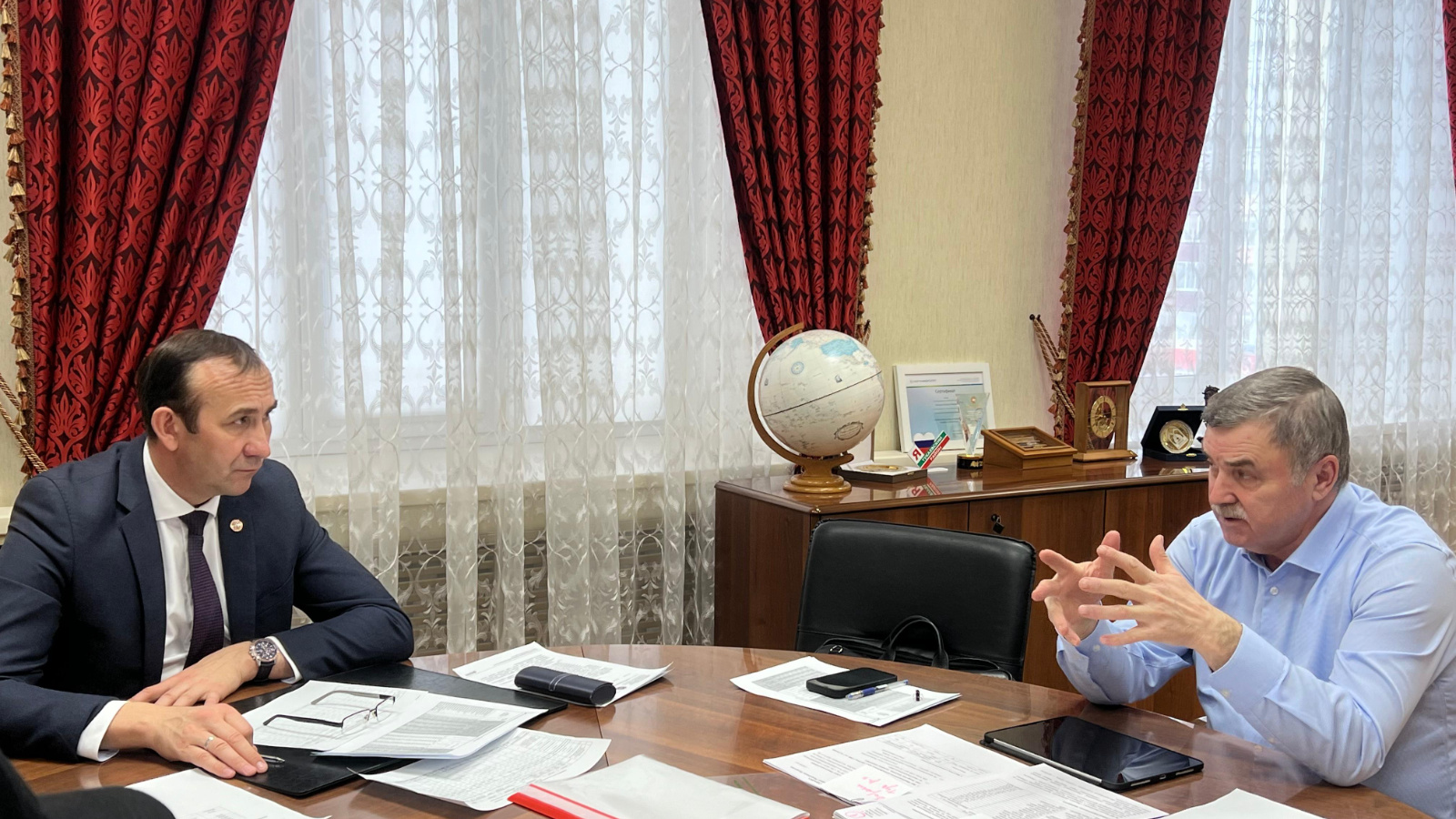 Глава Министерства транспорта и дорожного хозяйства РТ Фарит Ханифов сегодня посетил Тукаевский район и провел рабочее совещание, в котором приняли участие руководитель Исполнительного комитета Тукаевского муниципального района Камиль Назмиев, его первый заместитель Айрат Хабибуллин и ведущий специалист «Главтатдортранс» Рустем Гайбадуллин.